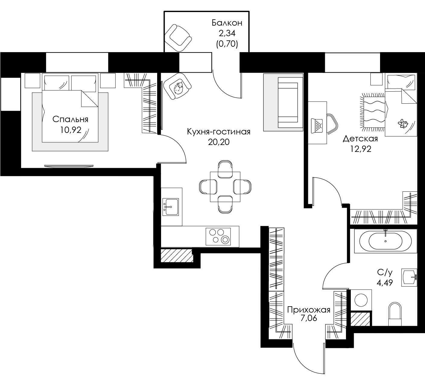 Двухкомнатная квартира №18 с предчистовой отделкой, Корпус 2, Секция 1