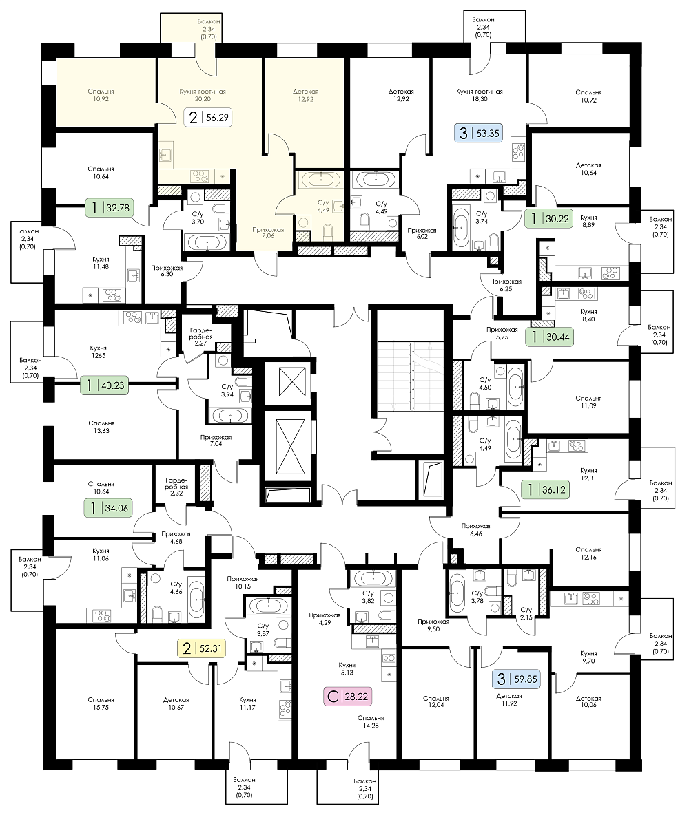 Двухкомнатная квартира №161 с чистовой отделкой, Корпус 1.1, Секция 1