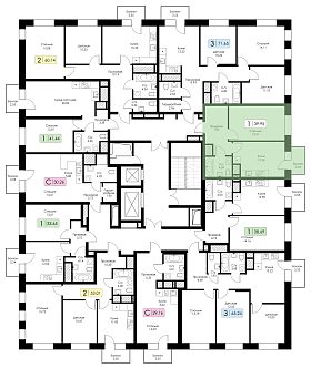 Однокомнатная квартира №109 с чистовой отделкой, Корпус 1, Секция 1