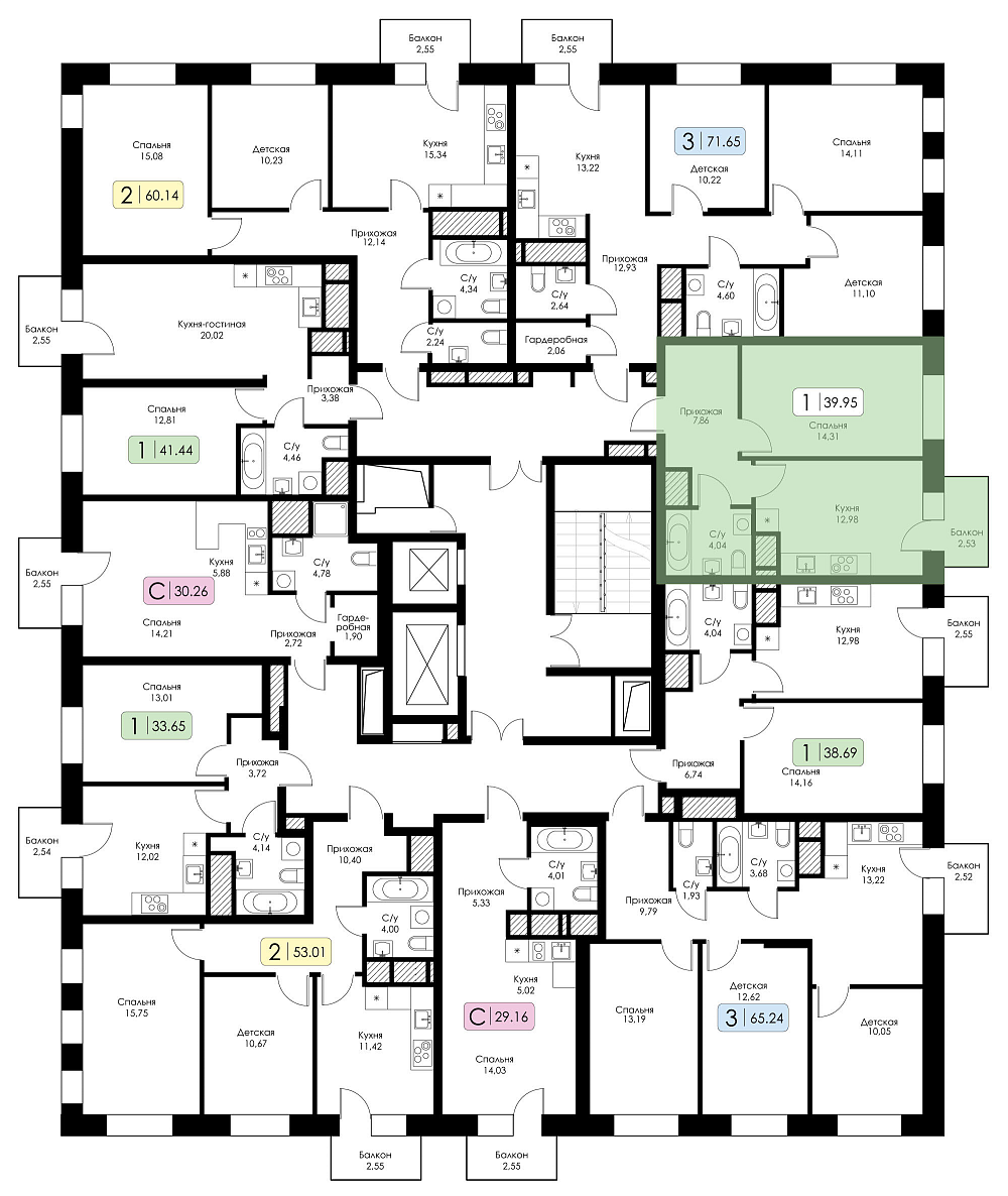 Однокомнатная квартира №19 с чистовой отделкой, Корпус 5, Секция 1