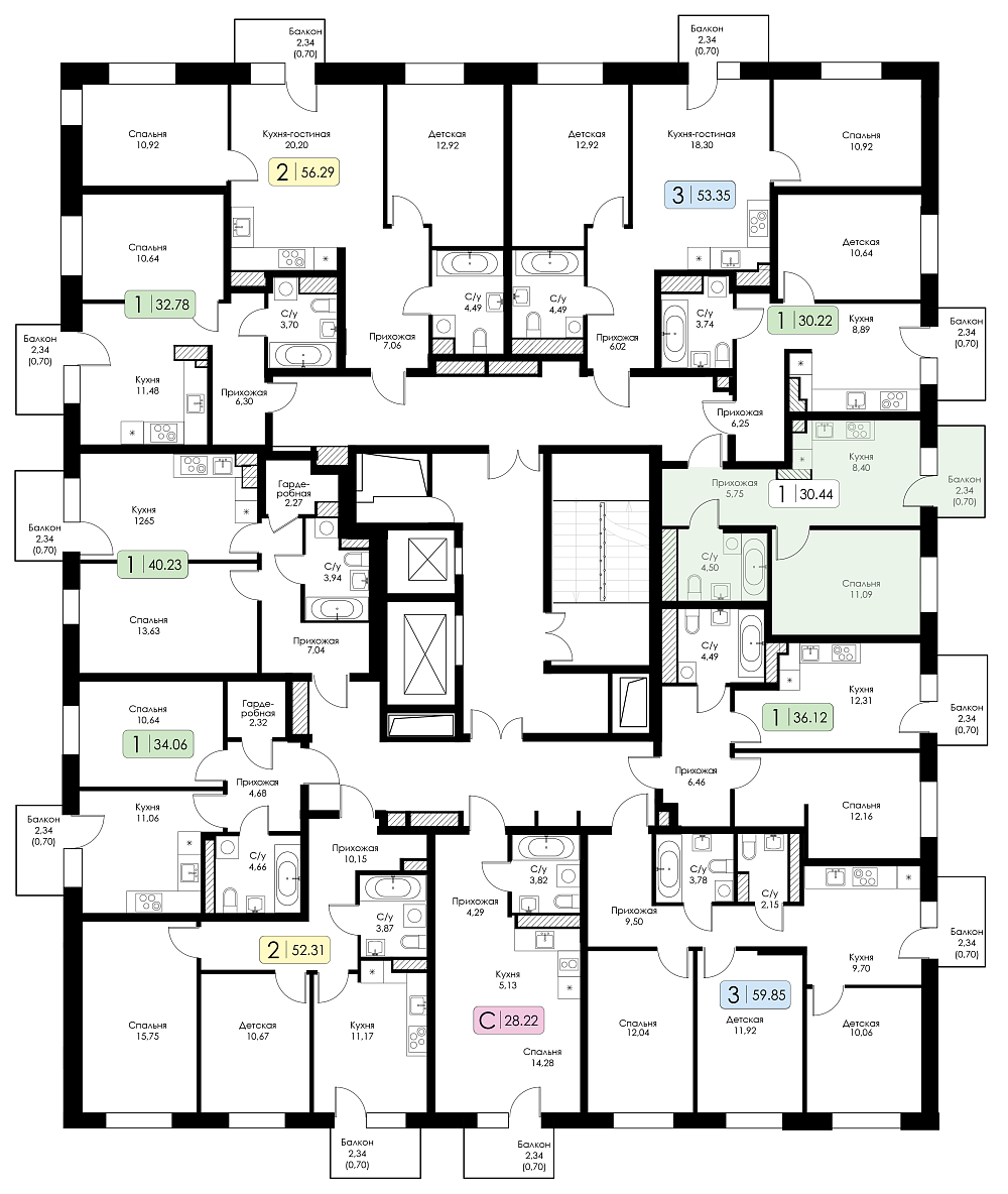 Однокомнатная квартира №131 с предчистовой отделкой, Корпус 1.1, Секция 1