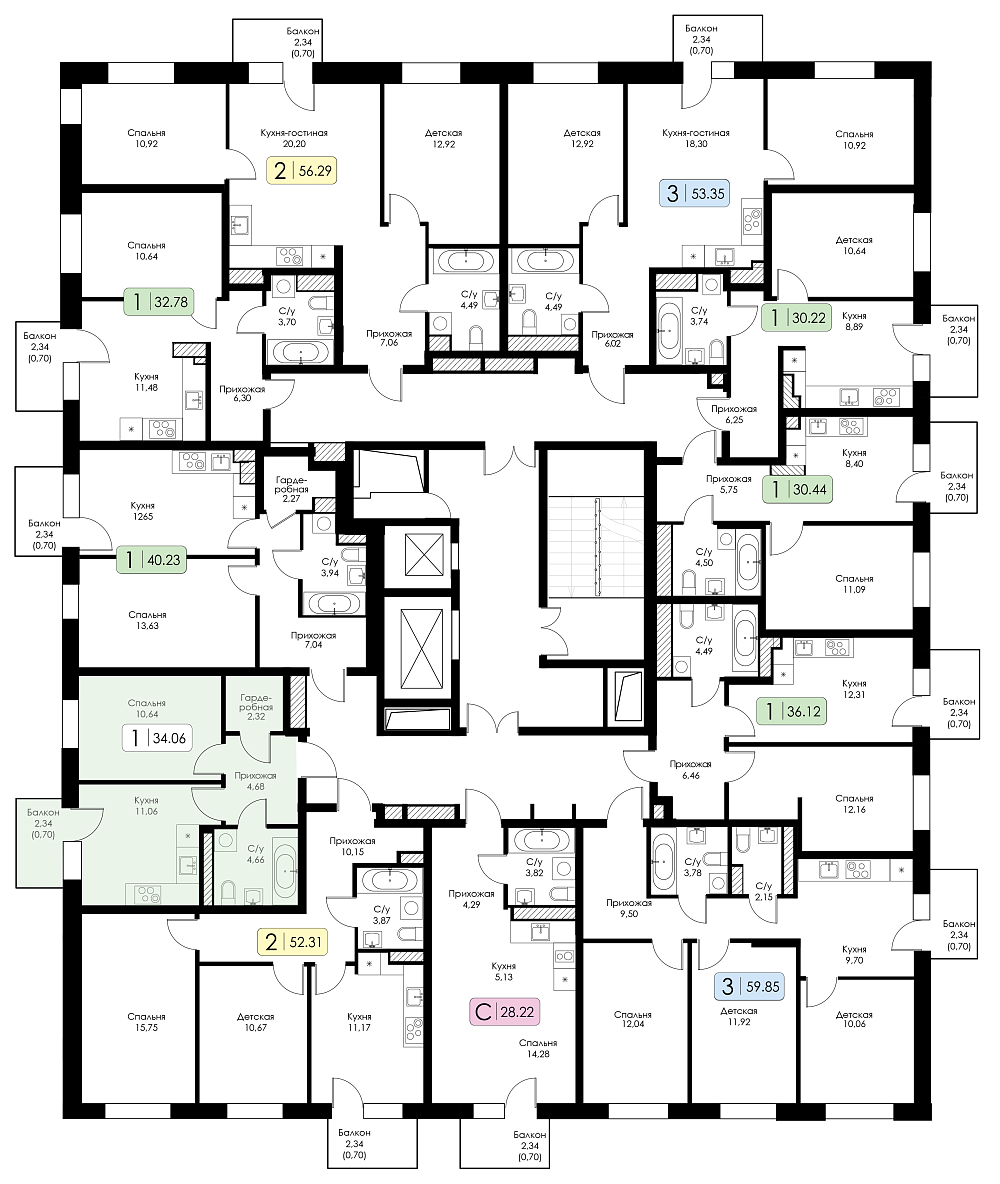 Однокомнатная квартира №169 с чистовой отделкой, Корпус 1.1, Секция 1