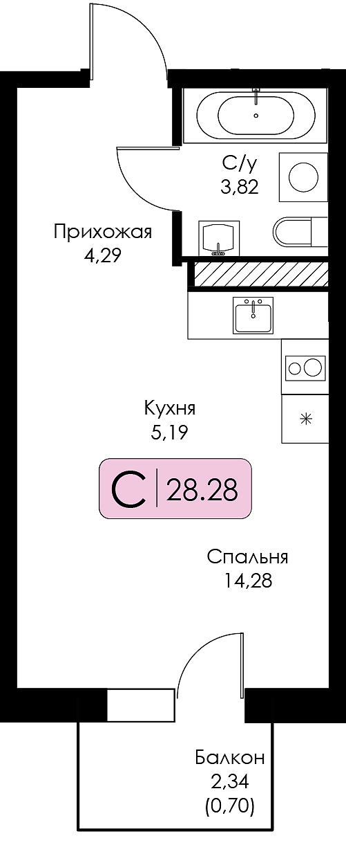 Квартира-студия №24 с предчистовой отделкой, Корпус 1.1, Секция 1
